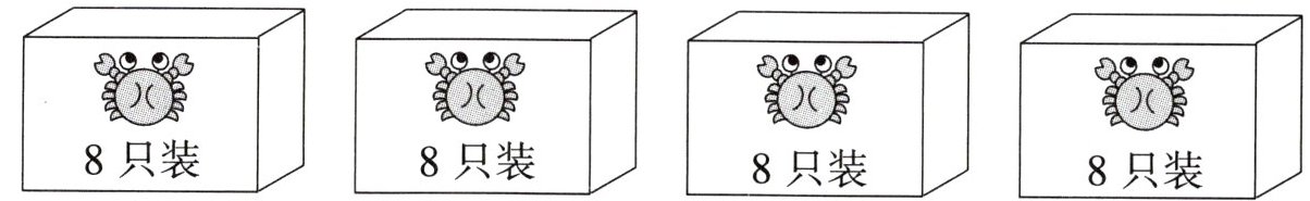 三、如图,一共有多少只螃蟹?如果每只螃蟹的售价为$20$元,那么一箱螃蟹能卖多少钱?