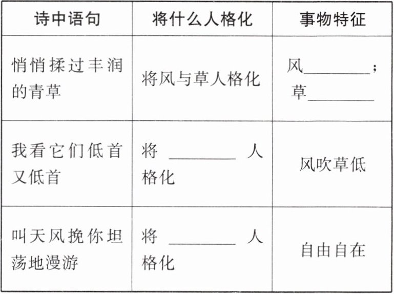 |悄悄揉过丰润的青草|将风与草人格化|风______;草______|