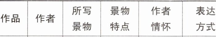 作品|作者|所写景物|景物特点|作者情怀|表达方式|