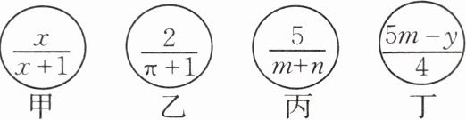 1. 如图,甲、乙、丙、丁四人手中各有一个圆形卡片,则卡片中的式子是分式的有(