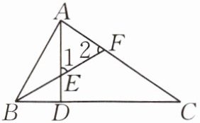 题型2 如图,$AD$,$BF$ 分别是 $\triangle ABC$ 的高与角平分线,$BF$,$AD$ 交于点 $E$,$\angle 1= \angle 2$。求证:$\triangle ABC$ 是直角三角形。