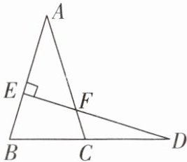 5. 如图,点 $D$ 在 $BC$ 的延长线上,$DE\perp AB$ 于点 $E$,交 $AC$ 于点 $F$。若 $\angle A = 35^{\circ}$,$\angle D = 15^{\circ}$,则 $\angle ACB$ 的度数为(