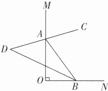 12. 如图,$\angle MON = 90^{\circ}$,点 $A$,$B$ 分别在射线 $OM$,$ON$ 上移动(不与点 $O$ 重合),$AC$ 平分 $\angle MAB$,$AC$ 的反向延长线与 $\angle ABO$ 的平分线相交于点 $D$.
