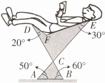 10. 如图,这是可调躺椅示意图(数据如图),$AE$ 与 $BD$ 的交点为 $C$,且 $\angle A$,$\angle B$,$\angle E$ 保持不变. 为了舒适,需调整 $\angle D$ 的大小,使 $\angle EFD = 110^{\circ}$,则图中 $\angle D$ 应