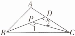 8. 如图,$P$ 是 $\triangle ABC$ 内一点,连接 $BP$ 并延长交 $AC$ 于点 $D$,连接 $PC$,则图中 $\angle 1$,$\angle 2$,$\angle A$ 的大小关系是 (