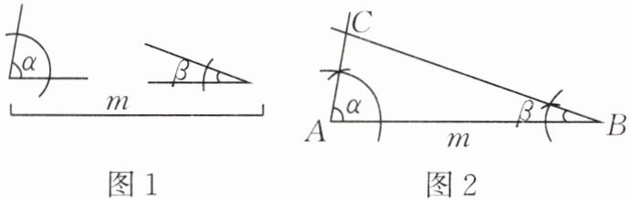 4. 如图1,已知∠α,∠β,线段m,求作△ABC。