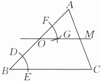 ①以点B为圆心,适当长为半径画弧,交线段BO于点D,交线段BC于点E;