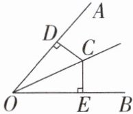 2. 如图,∠AOB= 72°,CD⊥OA于点D,CE⊥OB于点E,且CD= CE,则∠DOC=