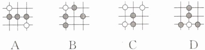 3. 围棋起源于中国,古代称之为“弈”,至今已有四千多年的历史. 下列由黑、白棋子摆成的图案中,是轴对称图形的是(