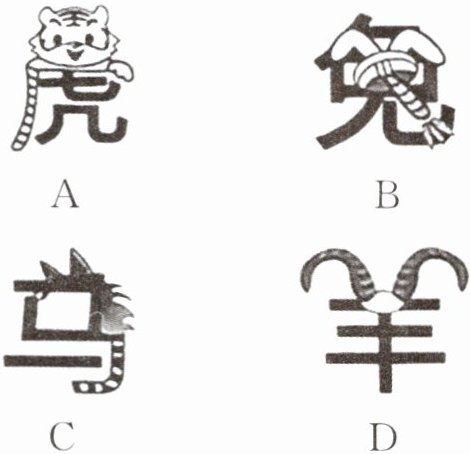 1. 十二生肖是我国悠久的民俗文化,下列生肖汉字是轴对称图形的是(