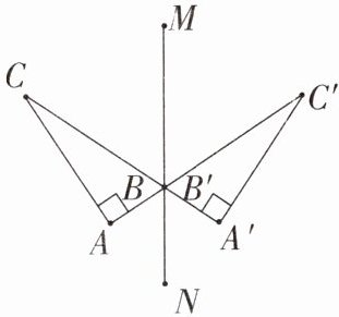 11. 如图,$Rt\triangle ABC关于直线MN的对称点分别为A'$,$B'$,$C'$,其中$\angle A = 90^{\circ}$,$AC = 8\ cm$,$A'C = 12\ cm$.