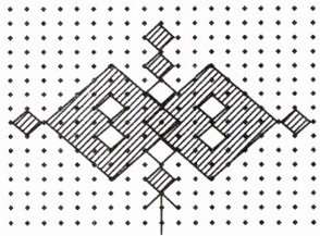 13. 如图,这是一个在$19× 16$的点阵图上画出的“中国结”,点阵的每行及每列之间的距离都是$1$,请你画出“中国结”的对称轴,并直接写出图中阴影部分的面积.