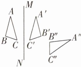 题型2 如图,$ \triangle ABC $ 和 $ \triangle A'B'C' $ 关于直线 $ MN $ 对称,$ \triangle A'B'C' $ 和 $ \triangle A''B''C'' $ 关于直线 $ EF $ 对称.