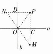 (2)过点P作PD⊥b,并延长PD到N,使得DN=PD.则点M,N就是点P关于a,b的对称点,连接OM,ON,OP.