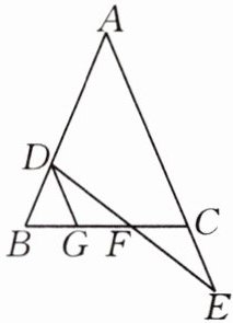 3. 如图,点$E在\triangle ABC的AC$边的延长线上,点$D在AB$边上,$DE交BC于点F$,$DF= EF$,$BD= CE$,过点$D作DG// AC交BC于点G$. 求证:$AB= AC$.