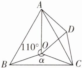 11. 如图,$O$ 是等边 $\triangle ABC$ 内一点,$\angle AOB = 110^{\circ}$,$\angle BOC = \alpha$。以 $OC$ 为一边作等边三角形 $OCD$,连接 $AD$。