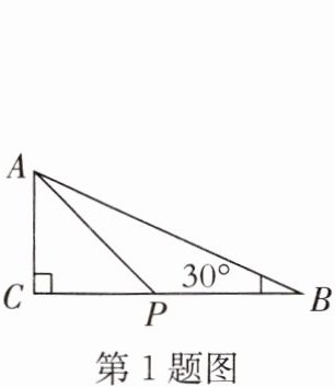 1. 如图,在△ABC中,∠C= 90°,AC= 3,∠B= 30°,P是BC边上的动点,则AP长不可能是(