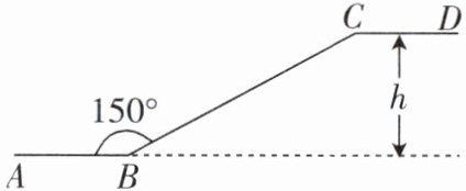 8. 如图,这是某商场一楼与二楼之间的手扶电梯示意图。其中AB,CD分别表示一楼、二楼地面的水平线,∠ABC= 150°,BC的长是8 m,则乘电梯从点B到点C上升的高度h是