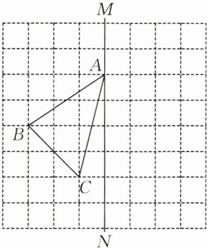 (2)在图中作出 $ \triangle ABC $ 关于直线 $ MN $ 的对称图形 $ \triangle A'B'C' $.