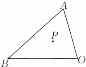 4. 如图,$ P $ 为 $ \triangle BOA $ 内任一点,在 $ OB $ 上找一点 $ M $,在 $ OA $ 上找一点 $ N $,使得 $ \triangle PMN $ 的周长最短.
