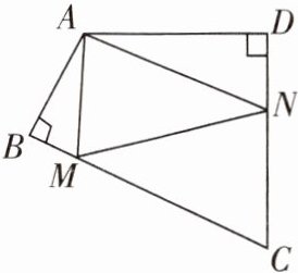 3. 如图,在四边形 $ ABCD $ 中,$ \angle BAD = 120° $,$ \angle B = \angle D = 90° $,在 $ BC $,$ CD $ 上分别找一点 $ M $,$ N $,使 $ \triangle AMN $ 周长最小,则 $ \angle AMN + \angle ANM $ 的度数是