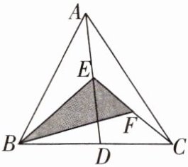 8. 如图,在△ABC中,D,E,F分别为BC,AD,CE的中点,且$S_{△ABC} = 4$cm^2,则阴影部分的面积为