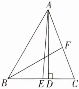 7. 如图,在△ABC中,AD是BC边上的高,AE,BF分别是∠BAC,∠ABC的平分线,∠BAC = 50°,∠ABC = 60°,则∠EAD + ∠ACD等于(