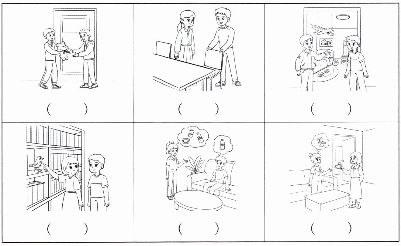 1. 听对话,判断对话发生的场景,在相应图片下的括号里写数字编号。