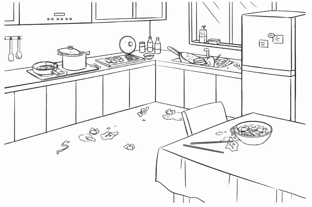 10. Lucas 煮完云吞面后忘记打扫厨房了,请你来帮忙。