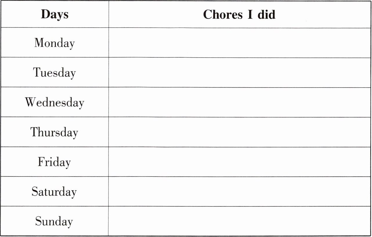 | Days | Chores I did |