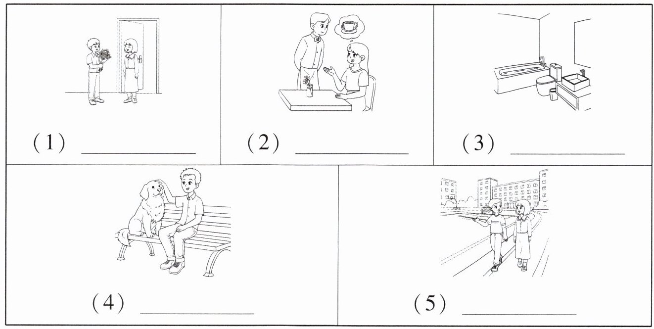 4. 判断听到的描述与图片内容是否一致。如一致,请在图片下方的横线上写“T”,否则写“F”。