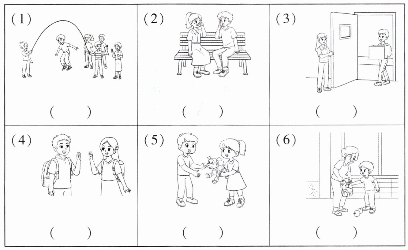 1. 听语块,将英文字母编号写在相应图片下方的括号里。