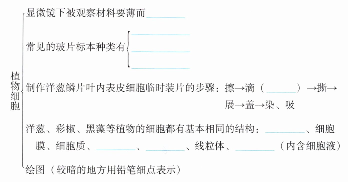 透明 装片 切片 涂片 清水 细胞壁 细胞核 叶绿体 液泡