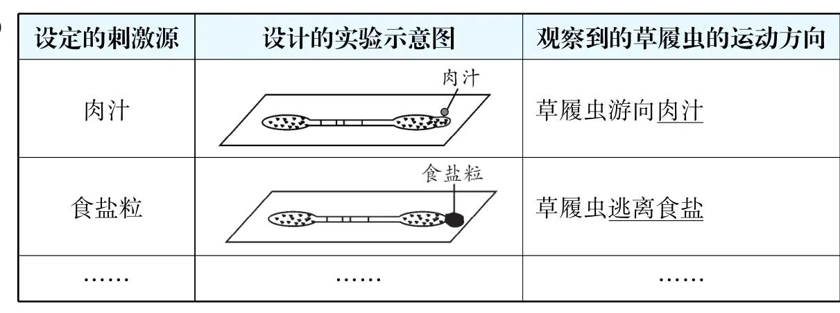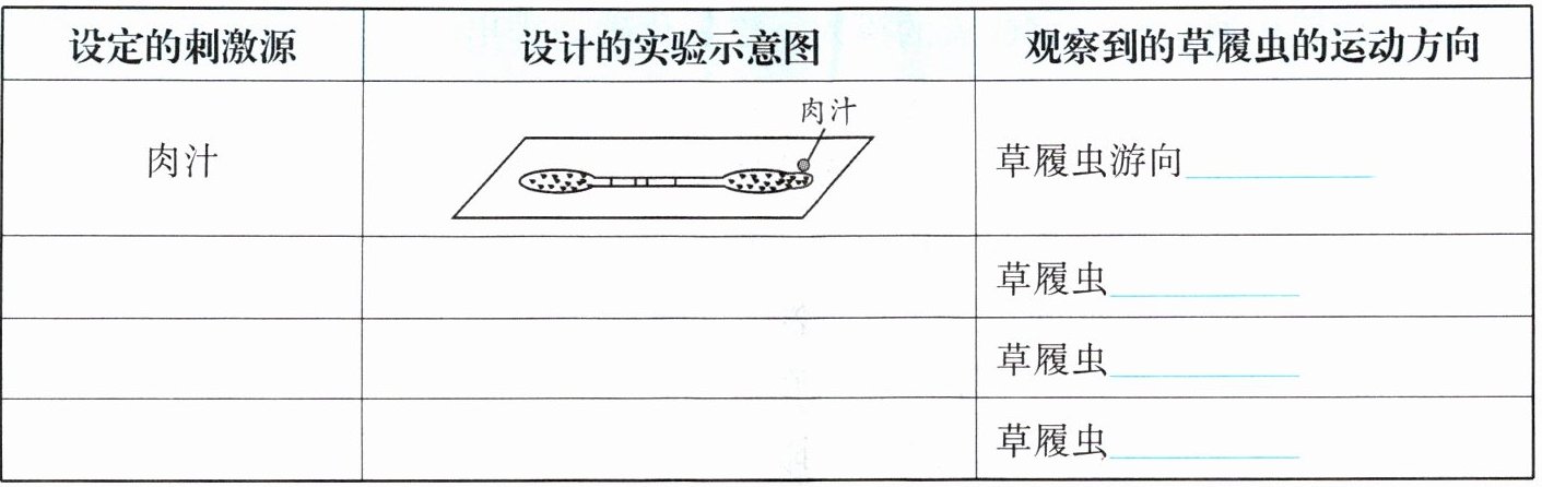 (3)参考上面的方法设计实验,探究草履虫在不同刺激下的运动方向。