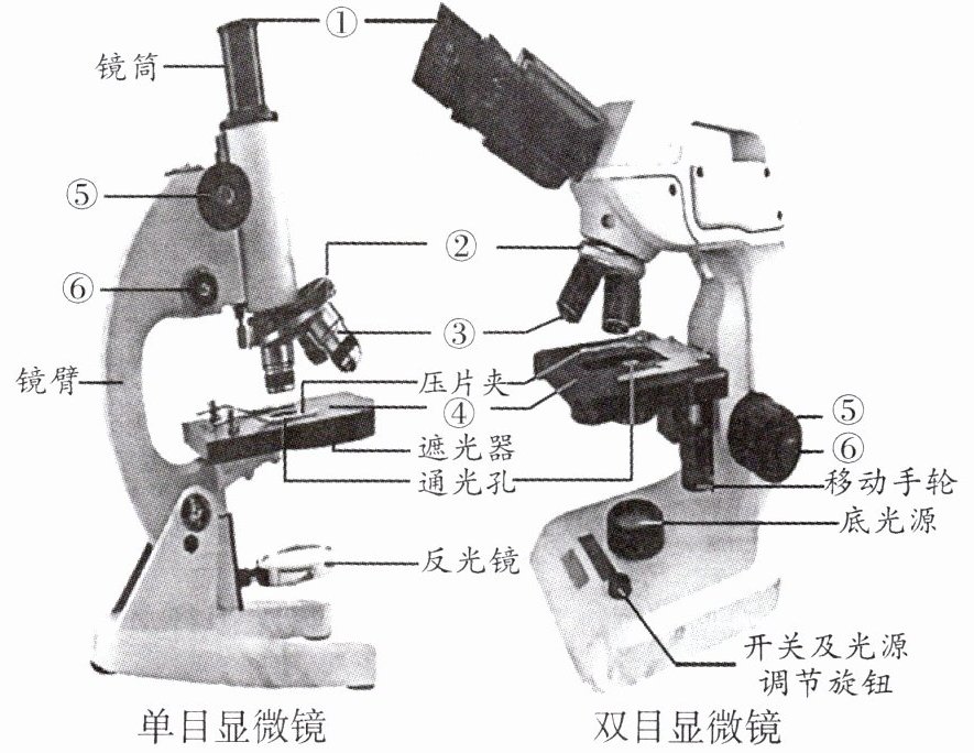 参照课本,对照下图补充填写显微镜部分结构名称。