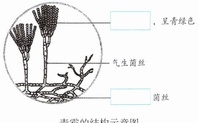 ,细胞质中有液泡等。2. 青霉的结构如下图所示,请填写结构名称: