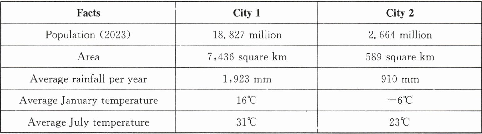 than that of City 2 in 2023. In area, City 2 is 2. smaller