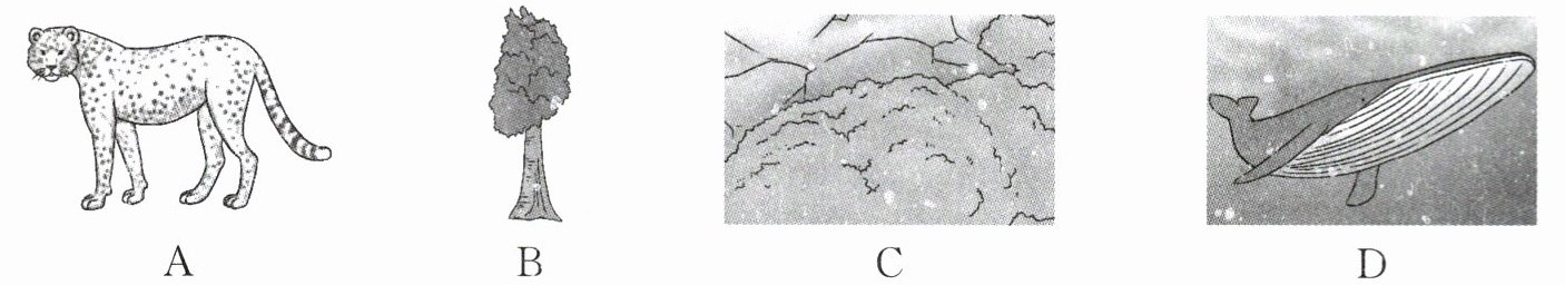 1. C moss 2. D blue whale 3. B redwood tree 4. A cheetah