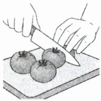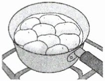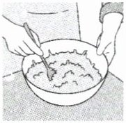 1. Add 2. Pour 3. Cut up 4. Bake 5. Boil 6. Mix