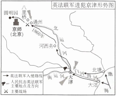 6. 陈旭麓在《近代中国社会的新陈代谢》中写道:“如果说鸦片战争的震撼主要冲击了沿海地区的话,那么连头带尾持续四年之久的第二次鸦片战争则把沉重的震撼带到了中国社会的中枢。”陈旭麓关于第二次鸦片战争看法的主要史实依据是( )