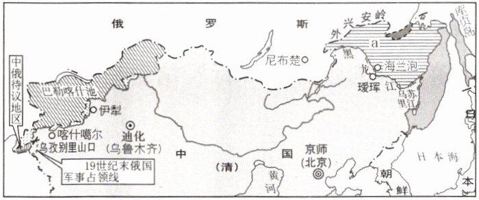 9. 下图中a处是通过______被迫割让给俄国的。横线处应该填写( )
