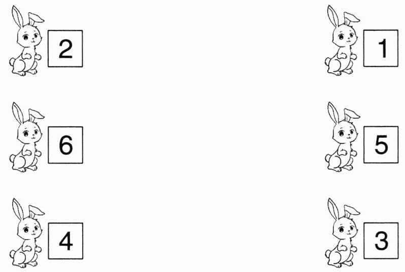 将左上方标有2的兔子与右下方标有5的兔子相连,左中间标有6的兔子与右上方标有1的兔子相连,左下方标有4的兔子与右下方标有3的兔子相连。