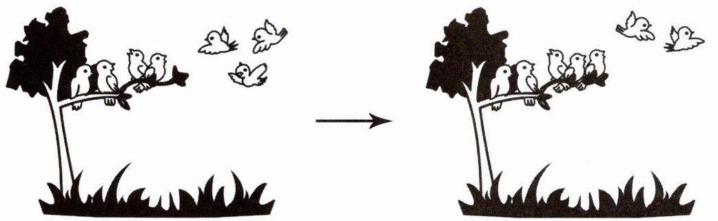 )只,现在树上的鸟有$□◯□◯□=□$(只)。