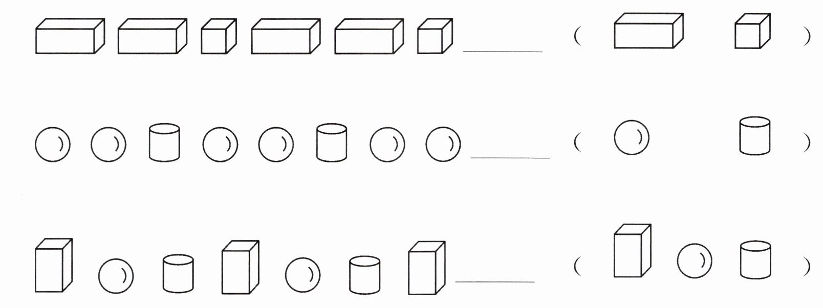 1. 第一行接着应该摆:长方体、正方体(圈出顺序为先长方体,后正方体)。