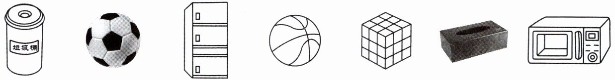 )个。(3)请把能向四面八方滚动的物体圈起来,在可以立起来,还可以滚动的物体下面画“△”。