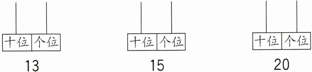 第三个数20:十位上画2个珠子,个位上不画珠子。