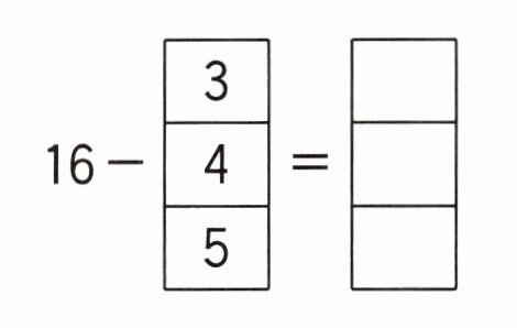 $10+\begin{array}{|c|}\hline3\\\hline4\\\hline5\\\hline\end{array}=\begin{array}{|c|}\hline\\\hline\\\hline\\\hline\end{array}$ $16-\begin{array}{|c|}\hline3\\\hline4\\\hline5\\\hline\end{array}=\begin{array}{|c|}\hline\\\hline\\\hline\\\hline\end{array}$