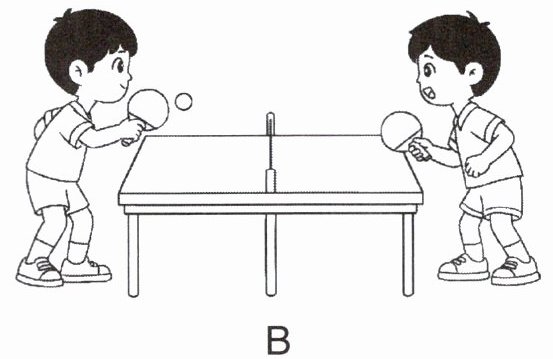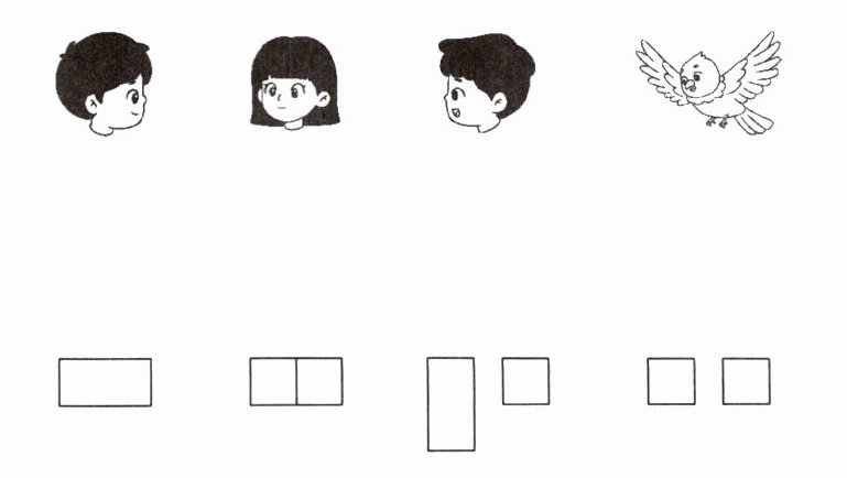 4.下面右边的四幅图分别是从什么位置画的?填一填。