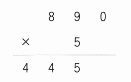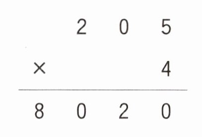 $\begin{array}{r}2\quad0\quad5\\×\quad\quad\quad4\\\hline8\quad0\quad2\quad0\end{array} $改正:$ \begin{array}{r}8\quad9\quad0\\×\quad\quad\quad5\\\hline4\quad4\quad5\end{array} $改正:
