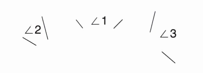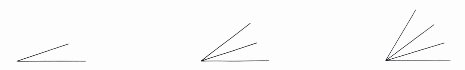 5. 老师在黑板上画了三个角,分别为∠1、∠2、∠3,值日的同学不小心擦掉了一部分。你能把这三个角按从大到小的顺序排列吗?